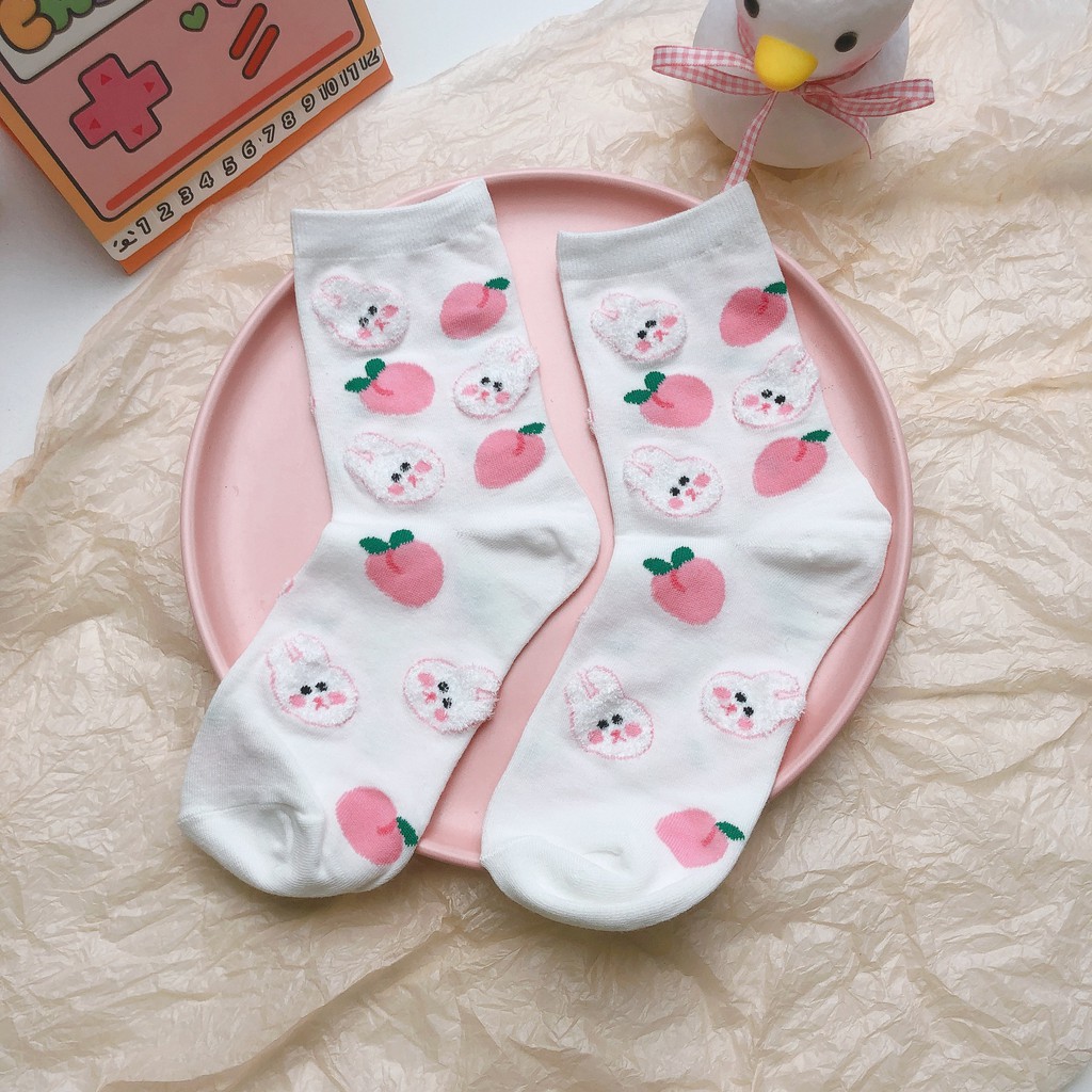 Tất Peach Bunny Dễ Thương Nhật Bản, Tất Họa Tiết Thỏ Bông - Tất được làm từ chất liệu cotton cùng công nghệ dệt khử mùi đem đến sự tự tin , thoải mái khi dùng - Thiết kế màu sắc độc đáo , dễ thương - Nhiều mẫu mã đa dạng cho bạn lựa chọn - Tất mềm mại , thấm hút mồ hôi mang đến cảm giác mát mẻ khô thoáng cho cả 4 mùa - Tất được làm từ chất liệu cao cấp có độ đàn hồi cao - Chất vải mịn màng , không bị xù lông khi sử dụng - Dễ mix đồ , thời trang - Freesize