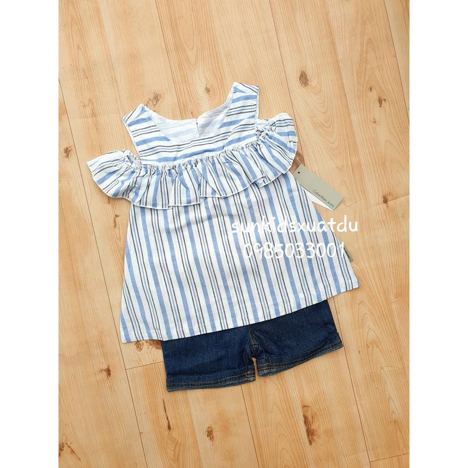 ✔ Full aet Calvin Klein hàng hiệu kẻ trẽ vai quần jean