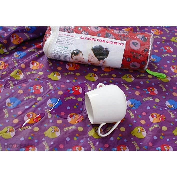 ***Cách dùng: -Bọc ga chống thấm ra ngoài đệm sau đó bọc ga thường (mùa hè trải chiếu) lên trên. -Khi bé tè, trớ…, chỉ cần thay ga thường, dùng khăn khô lau ga chống thấm cho sạch, có thể lau lại bằng khăn ướt cho hết mùi khai (nếu có) mà không hề ảnh hưởng đến đệm bên dưới.