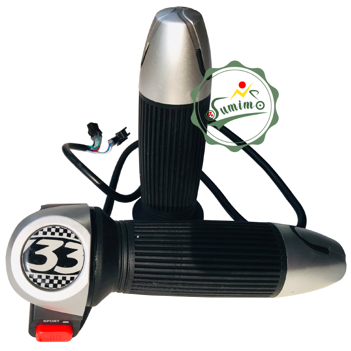 - Thông số kỷ thuật: Tay nắm cao su, nút Sport (tốc độ 2 cấp). Loại rắc nhỏ. Tay ga có 3 dây: dây đỏ điện dương 5 Volt, dây đen điện âm, dây xanh lá dây điều khiển. Rắc tốc độ 2 dây trắng và xanh dương