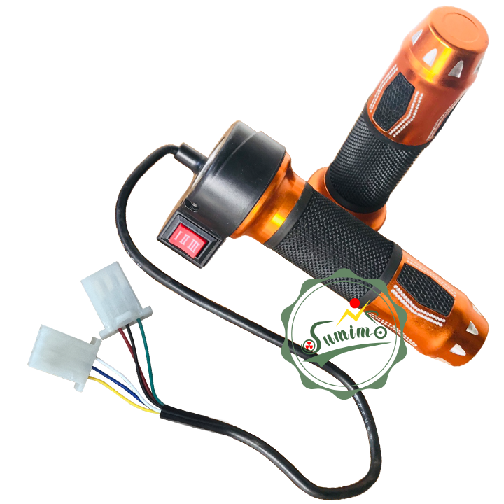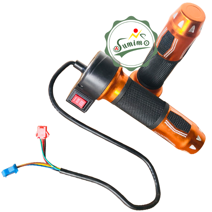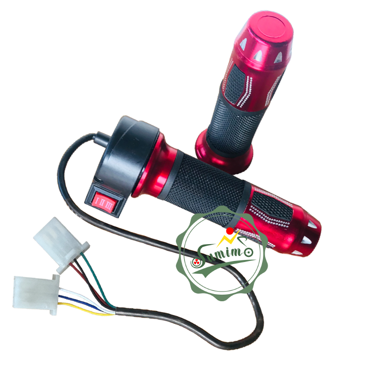 - Thông số kỷ thuật: Tay nắm nhựa, bọc gù nhôm CNC, nút công tắc tốc độ 3 cấp. Tay ga có 3 dây: dây đỏ điện dương 5 Volt, dây đen điện âm, dây xanh lá dây điều khiển. 3 dây tốc độ vàng/trắng/xanh.