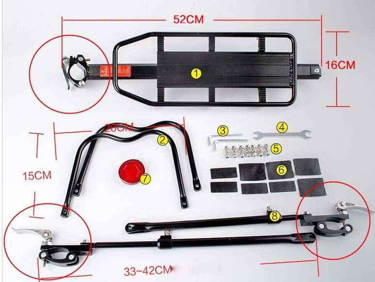 Chú Ý: Gác baga xe đạp thích hợp đường kính cọc yên ~3.3CM, cả hai khung chéo hình tròn hoặc hình elip, kích thước khung không vượt quá 2.5cm đường kính.