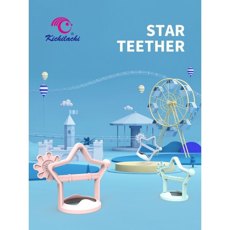 Giới thiệu Gặm nướu cho bé kichilachi hình ngôi sao, chất liệu silicon mềm mại, an toàn, giúp bé giảm nhanh cảm giác ngứa lợi