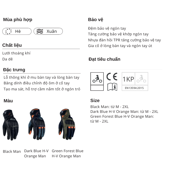 Găng tay LS2 Air Raptor Man được thiết kế để cung cấp sự bảo vệ và thoải mái cho người đi xe máy. Găng tay có các tính năng như sau: