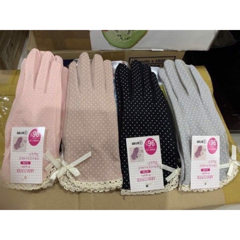 Găng tay chống nắng nhật là trang phục chống nắng phù hợp với đặc thù khí hậu của các nước nhiệt đới, quanh năm phải chịu các đợt nắng nóng khủng khiếp, đặc biệt là Việt Nam. ________________ ✿✿✿Công dụng * Đây là loại bao tay ngắn, dày dặn, phù hợp khi đã mặc áo chống nắng dài rồi thì chỉ cần đeo găng tay nữa là ổn. * Chất liệu mềm mịn, thấm hút tốt, sợi vải được dệt từ chất liệu đặc biệt để giúp tản nhiệt và làm mát da, bảo vệ da gần như tuyệt đối dưới ảnh hưởng trực tiếp của tia nắng mặt trời. * Bao tay chống tia UV Nhật Bản có thêu ren, nhiều màu sắc để các bạn tha hồ lựa chọn, hợp thời trang. * Lòng bàn tay được thiết kế chống trơn trượt, đảm bảo không cảm thấy khó chịu khi bạn đang dùng bao tay để lái xe, rất thích hợp cho các bạn hay thường xuyên chạy xe ngoài trời, đi phượt, leo núi hay đi biển.