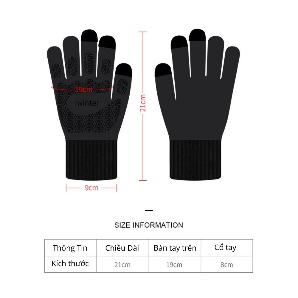 Sản phẩm găng tay len Dy15 có 1 size (one size) phù hợp với tất cả các form bàn tay