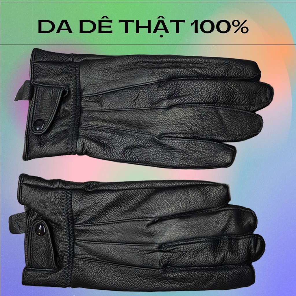 Giới thiệu Găng Tay Da Dê 1 Khuy Nam Màu Đen - Bảo Hành Da Thật 3 Năm - Không Bong Nổ - Đi Mưa Thoải Mái, Dễ Lái Xe