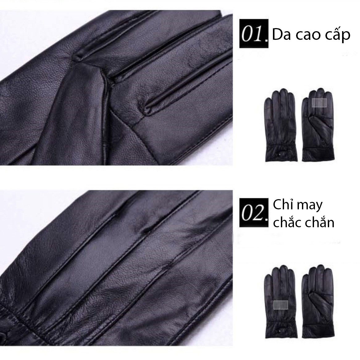 Sản phẩm được làm từ chất liệu da mềm mại, độ co dãn cao, cản gió kết hợp cùng lớp vải lót cao cấp, ấm áp, giúp đôi tay của bạn được bảo vệ. Dù di chuyển đường dài với nhiều họat động bạn cũng không phải lo lắng về độ bền của đôi găng, được làm từ dòng chất liệu hàng đầu trong sản xuất găng tay, găng tay da cao cấp dùng càng lâu càng mềm mịn, dẻo dai, không phai màu. Với thiết kế ôm sát, bạn có thể thoải mái hoạt động mà không cảm thấy vướng víu.