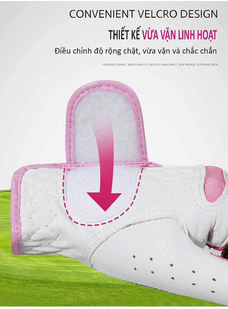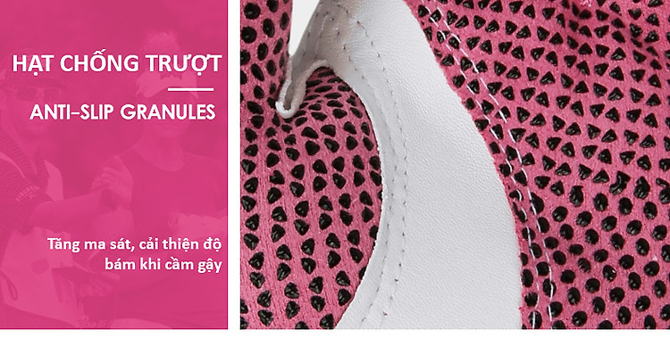- Lòng bàn tay thiết kế hạt chống trượt, tránh ma sát và tạo cú đánh ổn định hơn.