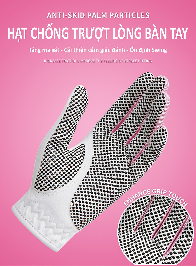 - Găng tay thể thao tiên tiến: Được làm bằng vải Microfiber giúp Golfer cảm thấy mềm mại và thoải mái khi đeo, chống bụi bẩn.