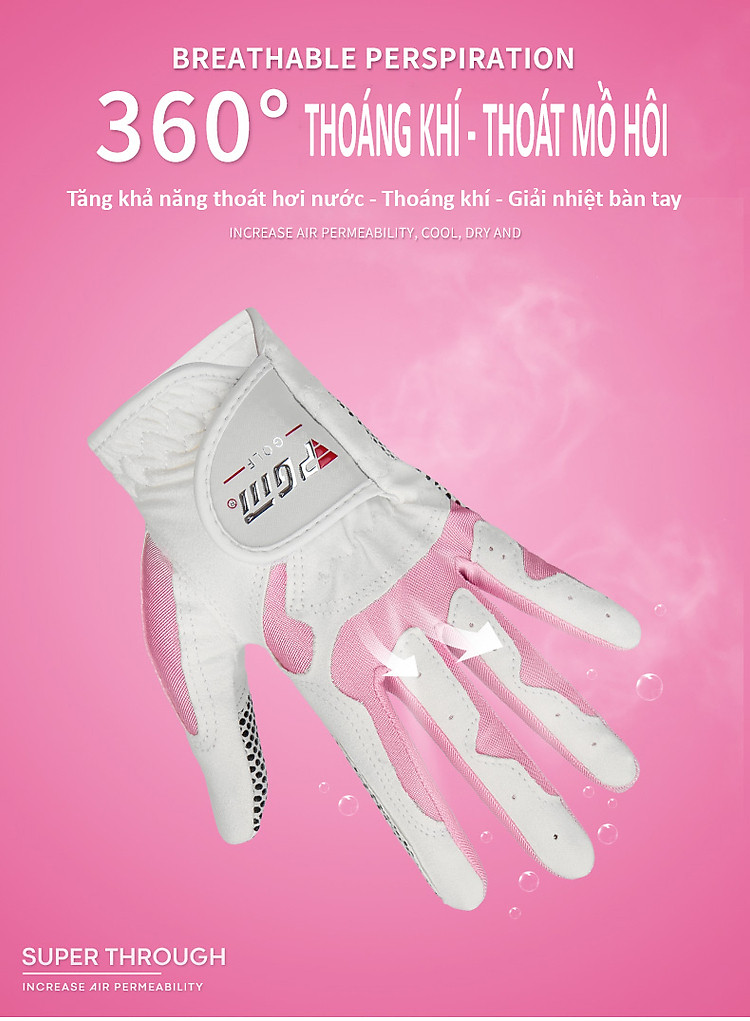 - Găng tay có phần lỗ thông hơi giúp găng thoáng khi, tránh đổ mồ hôi trong quá trình chơi Golf.