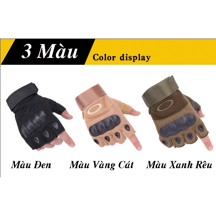 - Bạn đang cần tìm một mẫu găng tay hở ngón phong cách lính, bụi bặm, bền đẹp thì đây chính là mẫu găng tay nam bạn đang cần. Không những thế găng tay phượt còn chống nắng rất tốt, có phần gù bảo hộ tránh va chạm khi lái xe. Phần bàn tay cũng được thiết kế dành riêng cho việc lái xe máy. - Găng tay đi nắng Oakley cụt ngón hay còn gọi là hở ngón thiết kế theo phong cách chiến thuật với chất liệu vải mềm và chắc chắn bạn sẽ cảm thấy thoải mái khi lái xe , phần mu bàn tay được thiết kế gù nhựa màu đen giúp bảo vệ tay của bạn khỏi những va chạm không đáng có xảy ra. - Găng tay nam nữ Oakley được thiết kế hở ngón giúp người sử dụng dễ dàng thao tác như cầm nắm, và sử dụng điện thoại di động smart phone. Vì vậy nếu bạn hay chạy xe trong thành phố và có nhu cầu nghe điện thoại và sử dụng điện thoại nhiều thì đây là mẫu găng tay đáng để bạn chọn lựa. - Đây cũng là mẫu găng tay phượt được nhiều người ưa chuộng , phần lòng bàn tay được may một lớp đệm lót giúp bám sát tay ga, và chống va chạm khi bàn tay va chạm với mặt đường. - Găng tay chống nắng được sử dụng nhiều cho việc lái xe máy, xe moto đường dài, leo núi, vận động mạnh, chơi thể thao mạo hiểm… - Phần cổ tay thiết kế khóa dán tùy chỉnh khích thước theo tay của mỗi người. Sản phẩm có 3 size M L XL phù hợp dành cho cả nam và nữ. Dùng được tất cả các mùa trong năm.