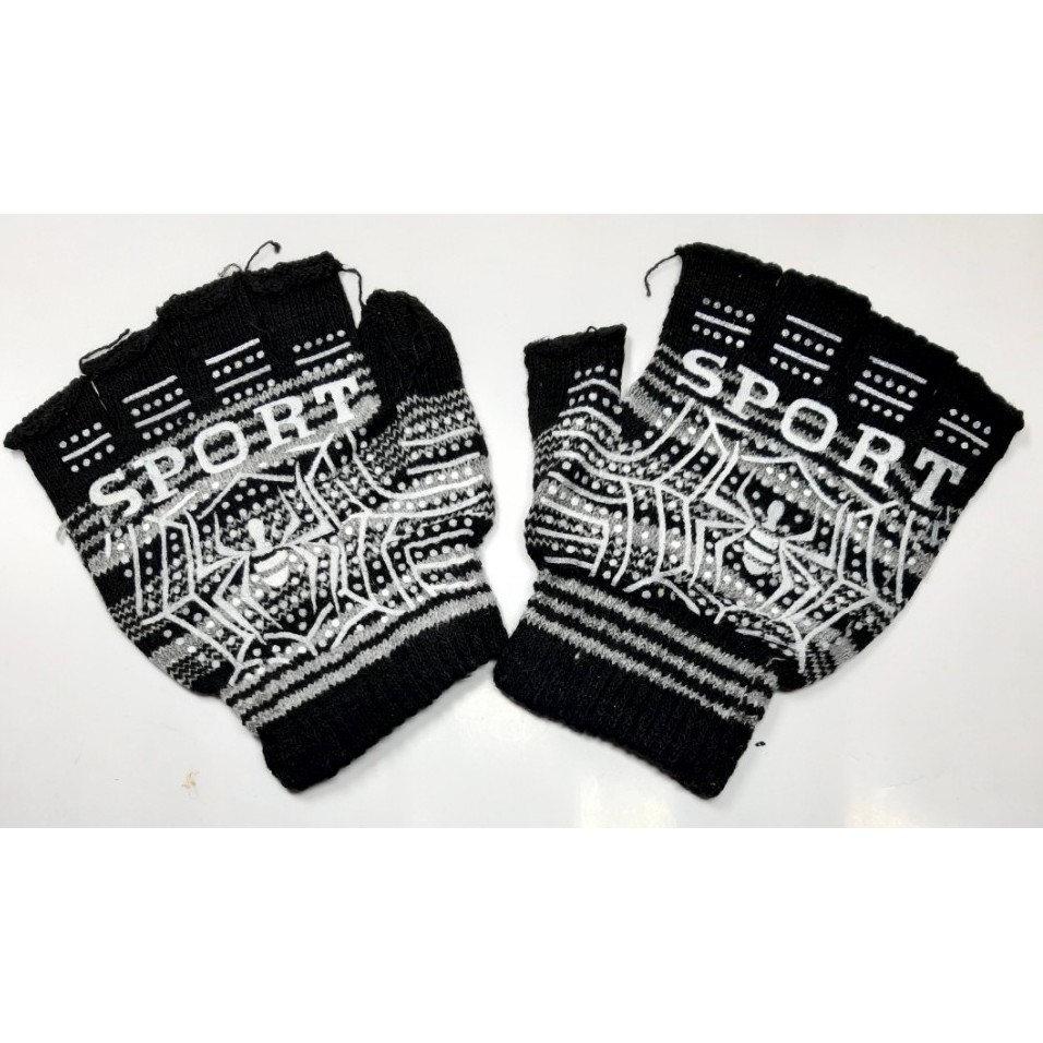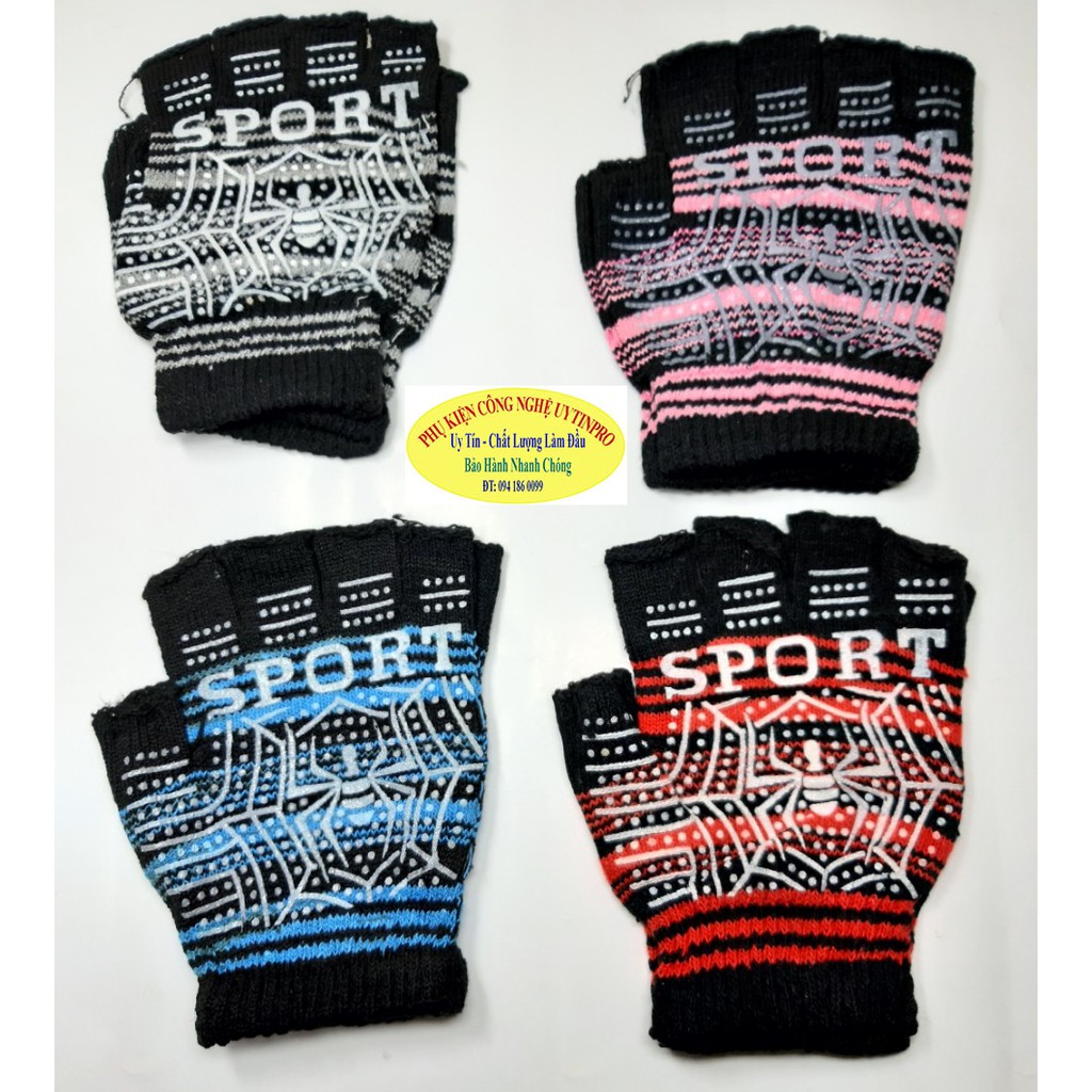 GĂNG TAY LEN NAM NỮ Giữ ẩm Chống nắng Cụt ngón In hình nhện SPORT