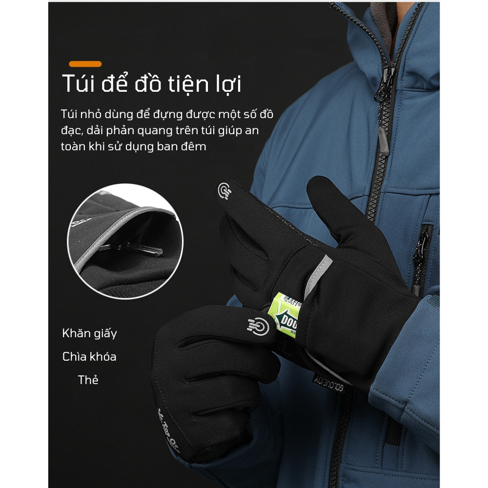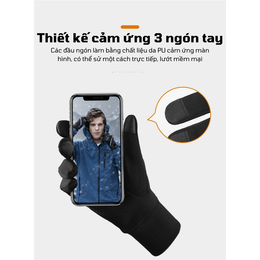 Găng tay phượt du lịch dã ngoại không thấm nước Hatsu GLJ9TL- Cảm ứng mượt mà - 2 lớp dày dặn, êm ái - Hàng cao cấp