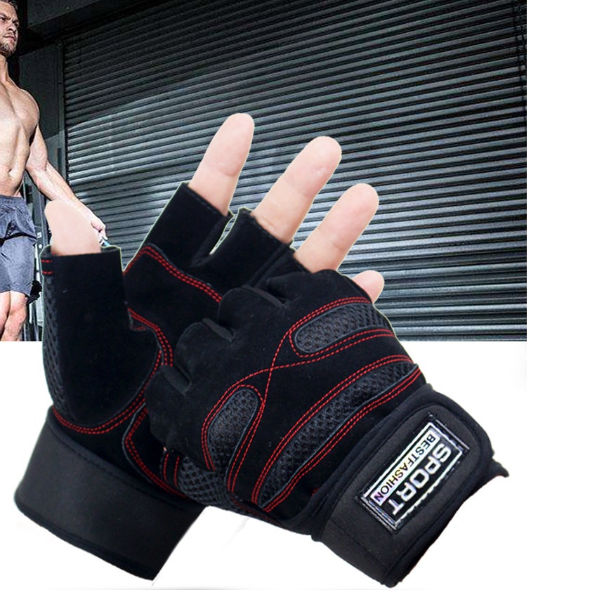 Găng tay tập GYM cụt ngón có quấn cổ tay, găng tay tập tạ cho NAM