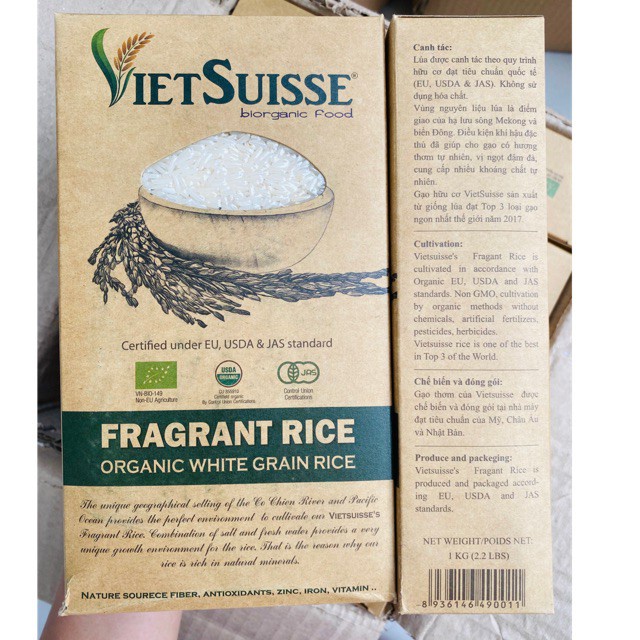 * Trọng lượng: 1kg * Xuất xứ: Việt Nam * HSD: 12.2022 - Gạo Vietsuisse được sản xuất từ lúa được canh tác theo quy trình hữu cơ đạt tiêu chuẩn hữu cơ EU, USDA và JAS. - Thành phẩm cuối cùng sẽ hoàn toàn an toàn cho người sử dụng: Sản phẩm không chứa thành phần giống biến đổi gien, thuốc trừ sâu, thuốc bảo vệ thực vật, thuốc diệt cỏ, phân bón vô cơ, các chất điều tiết sự tăng trưởng của cây trồng, chất bảo quản,...