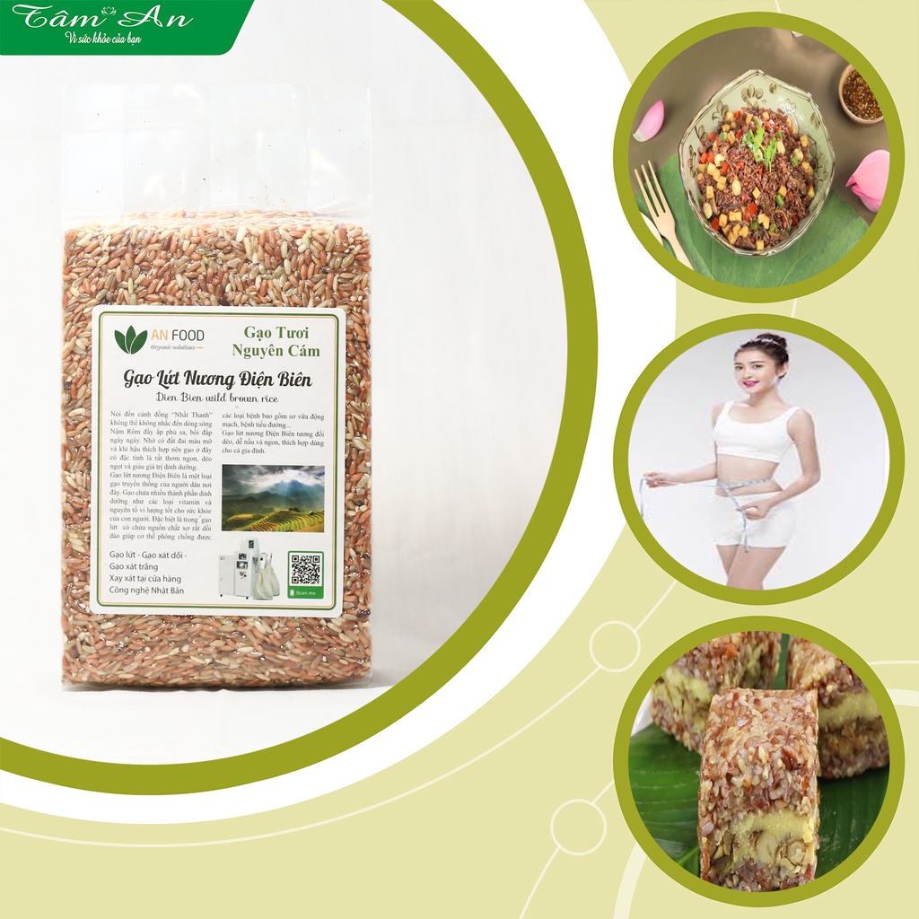THÀNH PHẦN : - Gạo Điện biên xay thô, giữ lại toàn bộ vỏ cám và phôi mầm. - Gạo được đóng gói ngay, không sử dụng chất đánh bóng, bảo quản, không dùng chất chống mối mọt. THÔNG TIN SẢN PHẨM: Nói đến cánh đồng Nhất Thanh không thể không nhắc đến dòng sông Nậm Rốm đầy ắp phù sa, bồi đắp ngày ngày. Nhờ có đất đai màu mỡ và khí hậu thích hợp nên gạo ở đây có đặc tính là rất thơm ngon, dẻo ngọt và giàu giá trị dinh dưỡng. Gạo lứt nương Điện Biên là một loại gạo truyền thống của người dân nơi đây. Gạo lứt nương Điện biên khá dẻo, dễ nấu và ngon, thích hợp dùng cho cả gia đình CÔNG DỤNG: - Chứa nhiều thành phần dinh dưỡng như các loại vitamin và nguyên tố vi lượng tốt cho sức khỏe của con người - Đặc biệt là trong gạo lứt có chứa nguồn chất sơ rất dồi dào giúp cơ thể phòng chống được các biến chứng sơ vữa động mạch, tiểu đường... - Gạo rất tốt cho người ăn chay, phụ nữ mang thai từ tháng thứ 6 trở đi