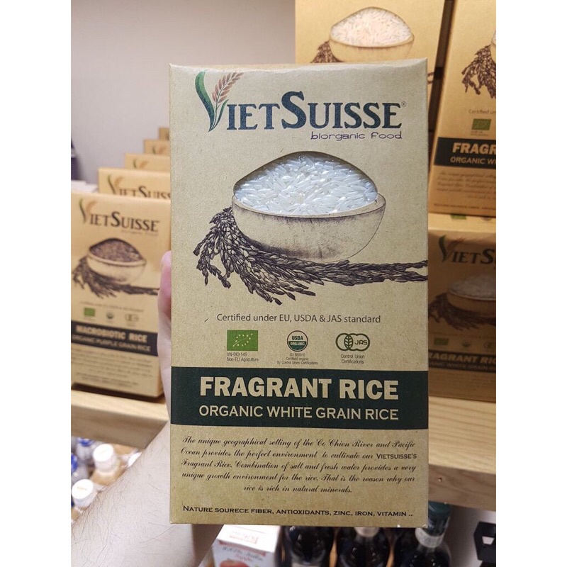 Gạo trắng hữu cơ Vietsuisse 1kg Khối lượng: 1kg Xuất xứ: Việt Nam Chứng nhận hữu cơ Mỹ, Nhật, Châu âu