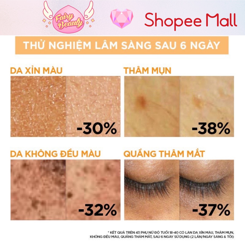 • Đặc biệt hiệu quả khi còn kết hợp cùng Niacinamide giúp tăng cường độ sáng cho da và mờ thâm quầng mắt, thâm mụn.