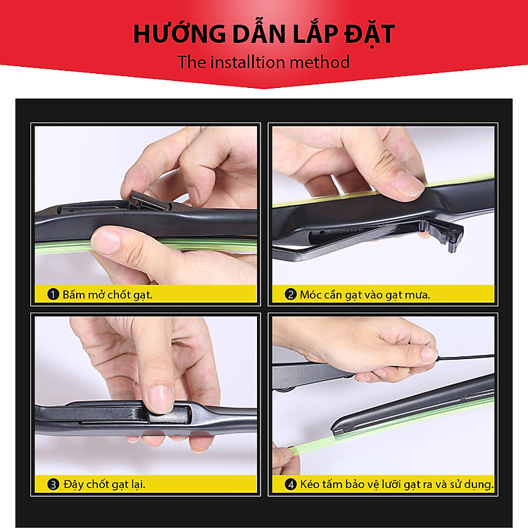 - Hướng dẫn sử dụng: Lắp đặt vào bộ phận gạt nước phía trước kính chắn gió.