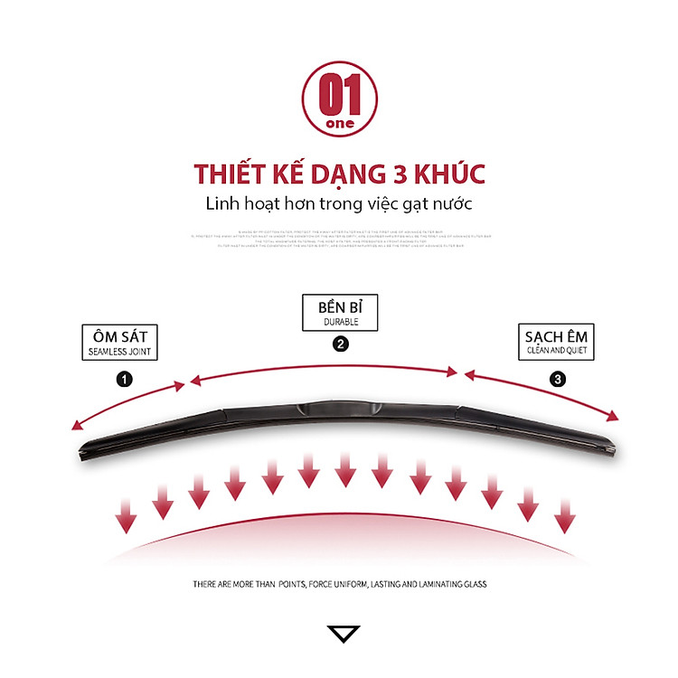 Gạt mưa 3 khúc VIAIR 331 (20 inch/500 mm) có thiết kế 3 khúc tiện lợi giúp làm sạch bề mặt kính một cách hiệu quả với hiệu suất 100% mà không gây tiếng ồn hay làm trầy xước bề mặt kính.