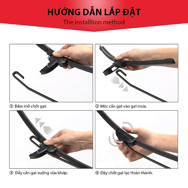 - Hướng dẫn sử dụng: Lắp đặt vào bộ phận gạt nước phía trước kính chắn gió.