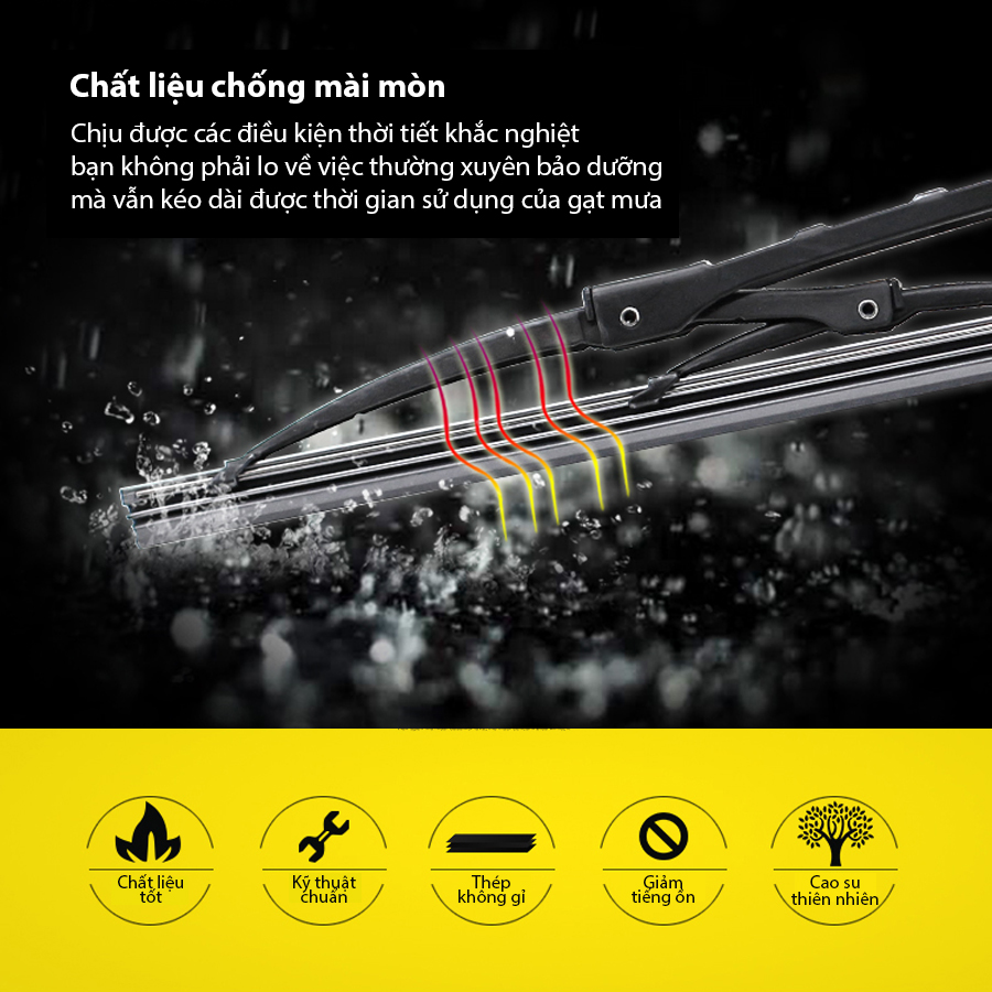 - Gạt mưa gọng sắt VIAIR 311 (18 inch/450 mm) được nghiên cứu và chế tạo bởi công nghệ tiên tiến, với nguyên liệu sắt dày, bền chắc. Lưỡi gạt được làm từ 100% cao su thiên nhiên nên giúp tẩy sạch nước bám trên mặt kính một cách hiệu quả mà không làm trầy xước mặt kính.