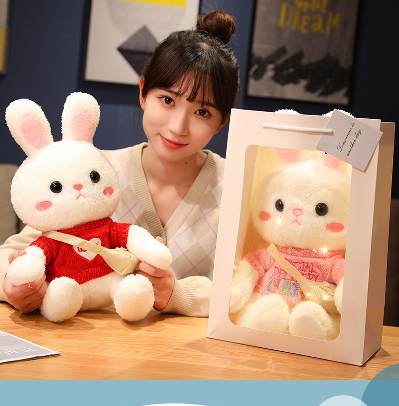 Gấu bông Thỏ con mặc áo len đeo túi chéo dễ thương mặc áo len đeo túi chéo siêu xinh 33cm