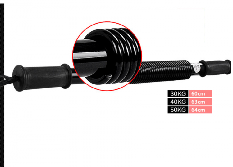Giữa thân gậy được làm từ lò xo có độ đàn hồi cao Sản phẩm có tay cầm chắc chắn và trang bị dây treo tiện lợi Lò xo co giãn theo lực bẻ của người tập Gậy bẻ tập tay là dụng cụ tập thể hình chuyên dụng cho các bài tập cơ tay và tăng cường cho các bài tập bổ trợ cho cơ bắp