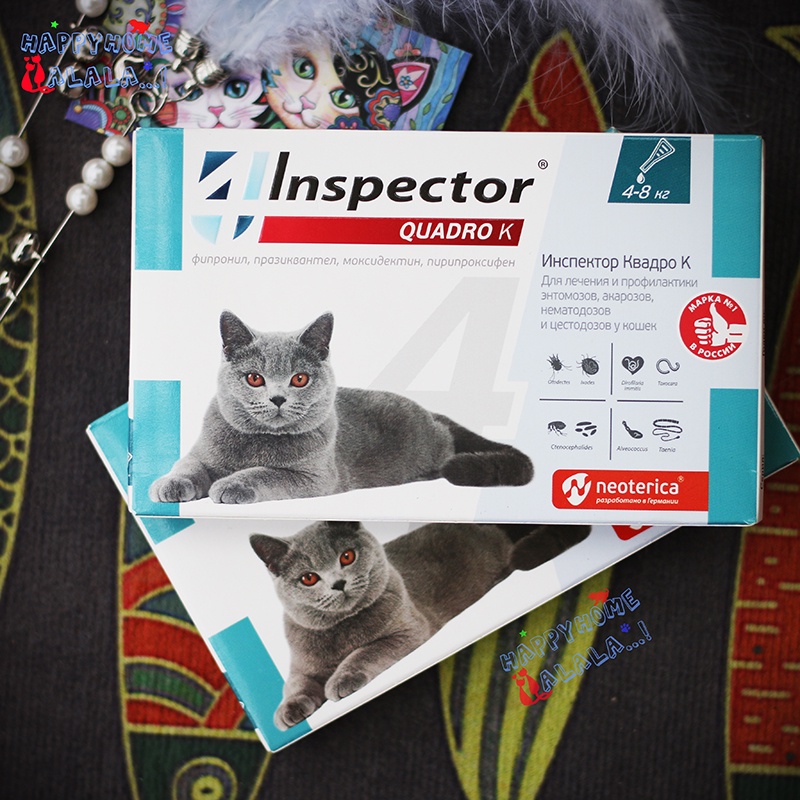 Giới thiệu Nhỏ gáy cho chó mèo trị ve rận kết hợp trị giun INSPECTOR QUADRO trị ký sinh phổ rộng ( nhập Nga)
