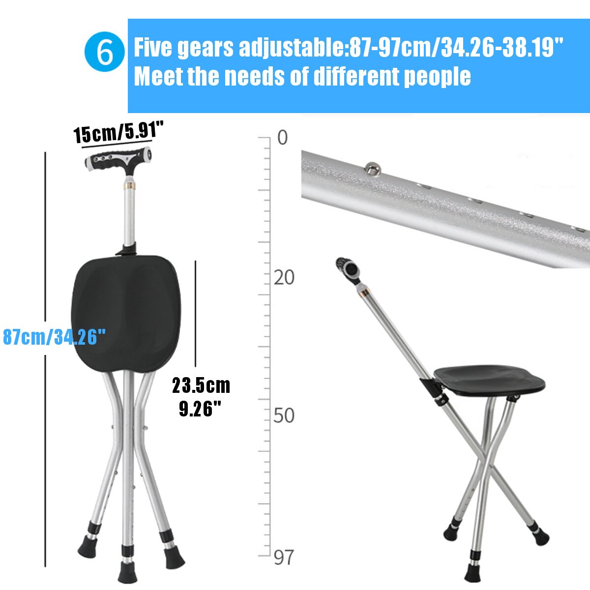 | Kích thước | Tổng Chiều Dài: Xấp xỉ. 87-97cm/34.26-38.19 "(5 Bánh Răng có thể điều chỉnh)Kích Thước ghế: Xấp xỉ. 23x23.5cm/9.06x9.26" |