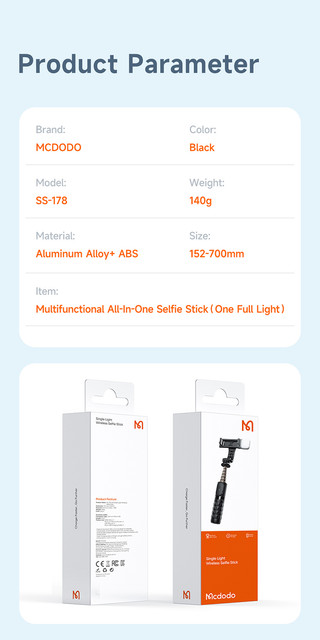 | Tên | Gậy Chụp Hình Mcdodo SS-1781 Wireless Selfie Stick with Single Lamp ZM Series |