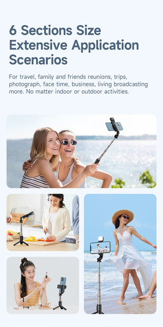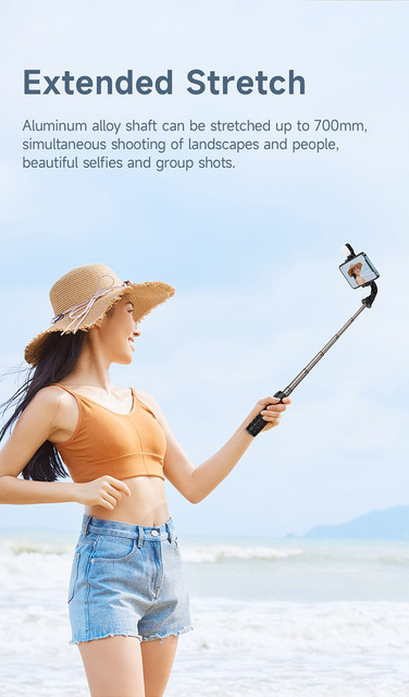 Sản phẩm có thể được mở rộng lên đến 70cm, giúp bạn chụp ảnh selfie từ khoảng cách xa hơn và góc rộng hơn, cho phép bạn chụp cả những bức ảnh có nhiều người hoặc phong cảnh rộng lớn.