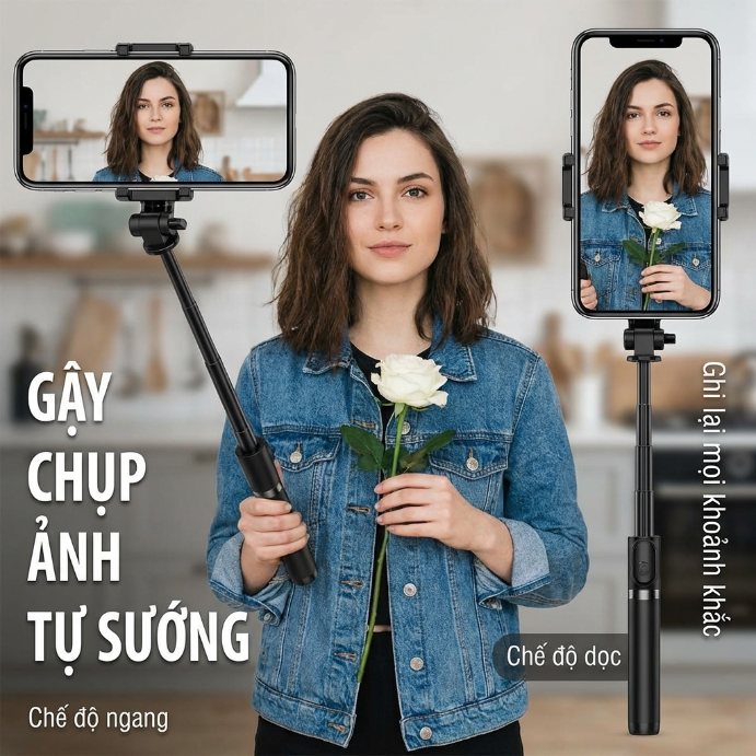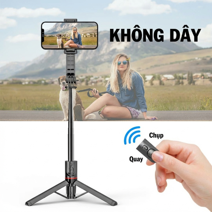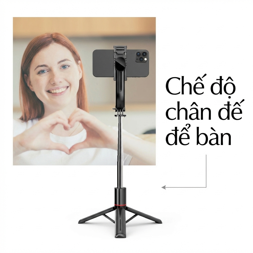 Tính năng: Gậy selfie + Tripod 3 chân + Xoay 360°