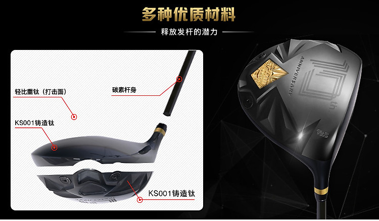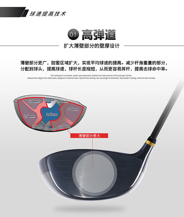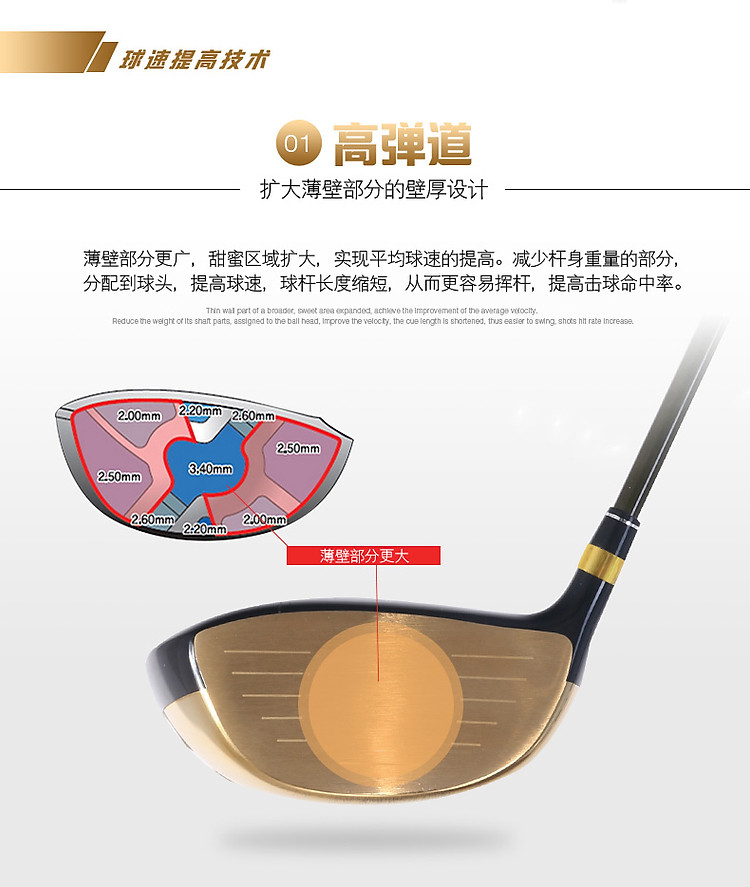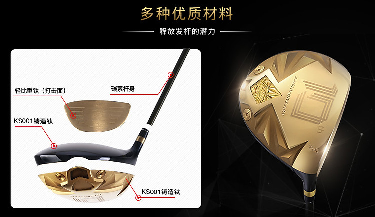 - Đầu gậy tích hợp được đúc bằng Titan, mặt vàng Titan nhỏ (độ bật cao) được liên kết bằng hàn Plasma, bề mặt siêu mỏng tới 2.0mm, hệ số đàn hồi đạt hơn 360, đạt độ đàn hồi cực cao.