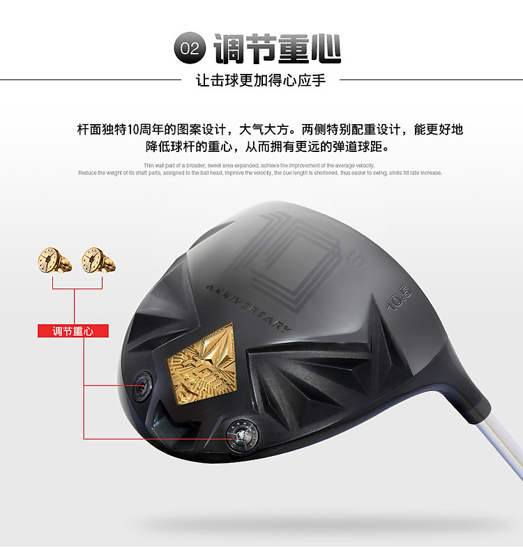 - Đầu gậy : Làm bằng Titan, mặt vàng Titan nhỏ (độ bật cao) được liên kết bằng hàn Plasma, cạnh dày ở giữa mỏng, hệ số đàn hồi đạt hơn 330, đạt độ đàn hồi cực cao.
