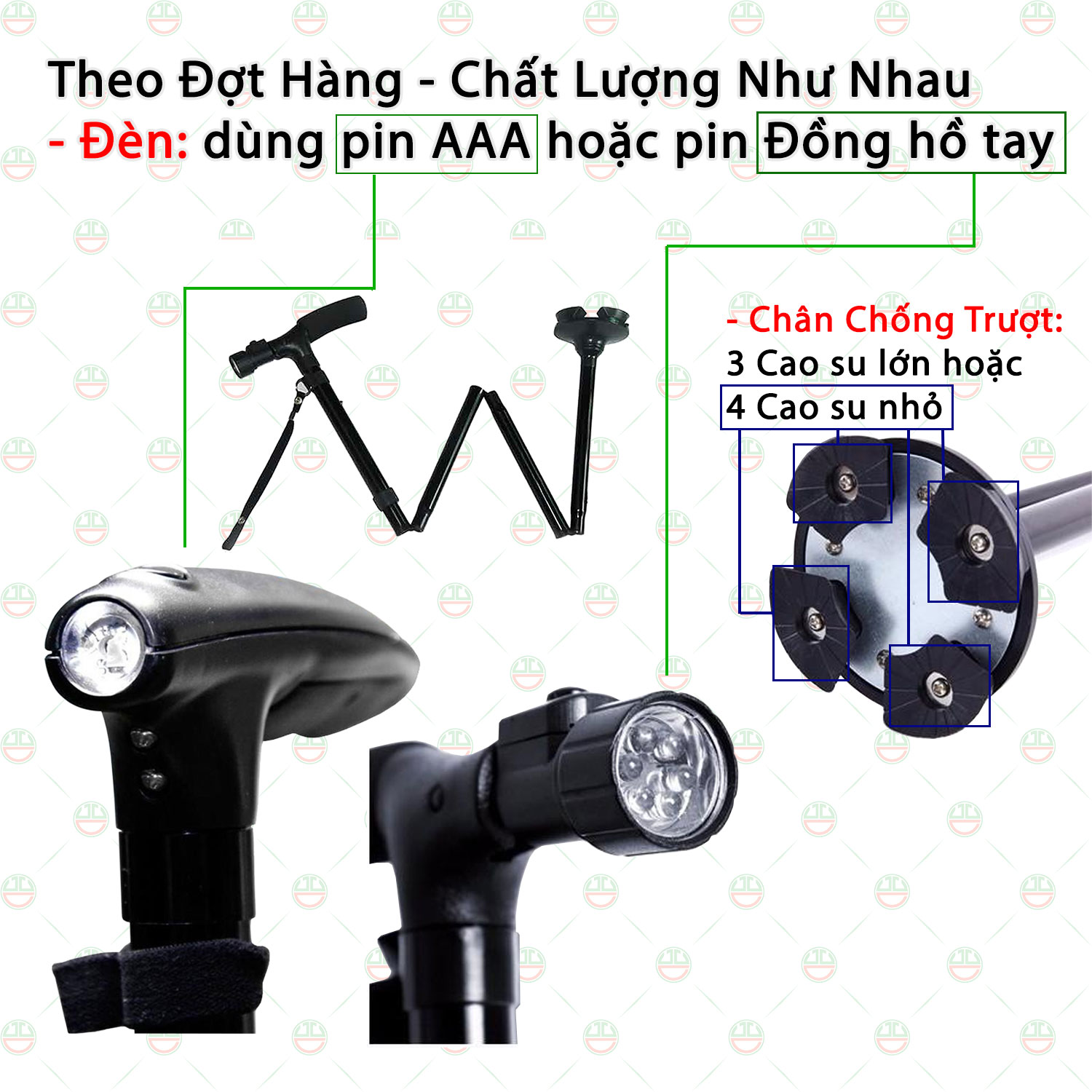 - Sản phẩm có thể gấp gọn, chân chống trượt, có đèn pin (có kèm theo 04 viên pin nút)