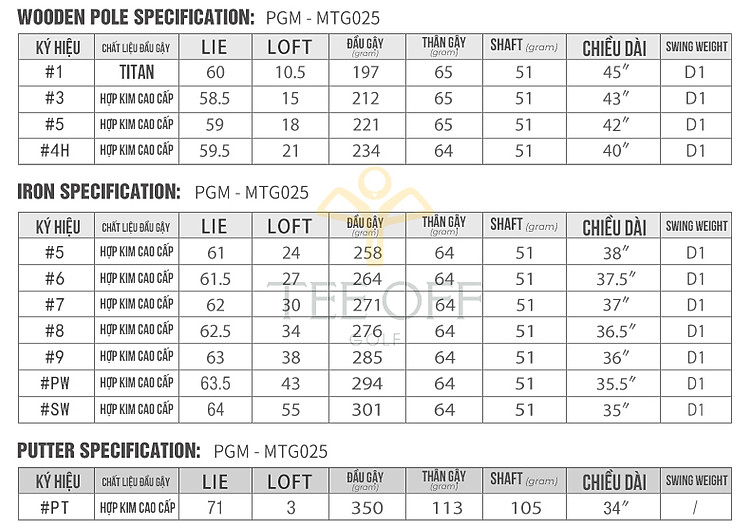 - TeeOff Golf là đại lý độc quyền phân phối - Nhập khẩu chính hãng các sản phẩm của PGM và nhiều thương hiệu đồ golf khác tại Việt Nam.