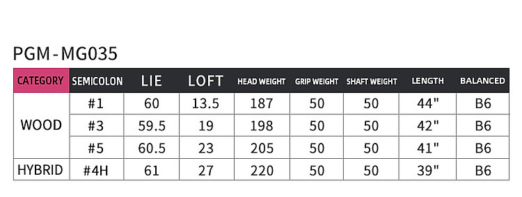 - Tên sản phẩm: BỘ GẬY GOLF NỮ - PGM GOLF CLUB LADY G300 - LTG035