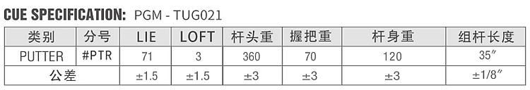 Gậy Putter PGM TUG021 sử dụng các vật liệu cao cấp và thiết kế đa nguyên trên đầu gậy để cải thiện trọng tâm tạo sự ổn định, tăng sự kiểm soát và chính xác.