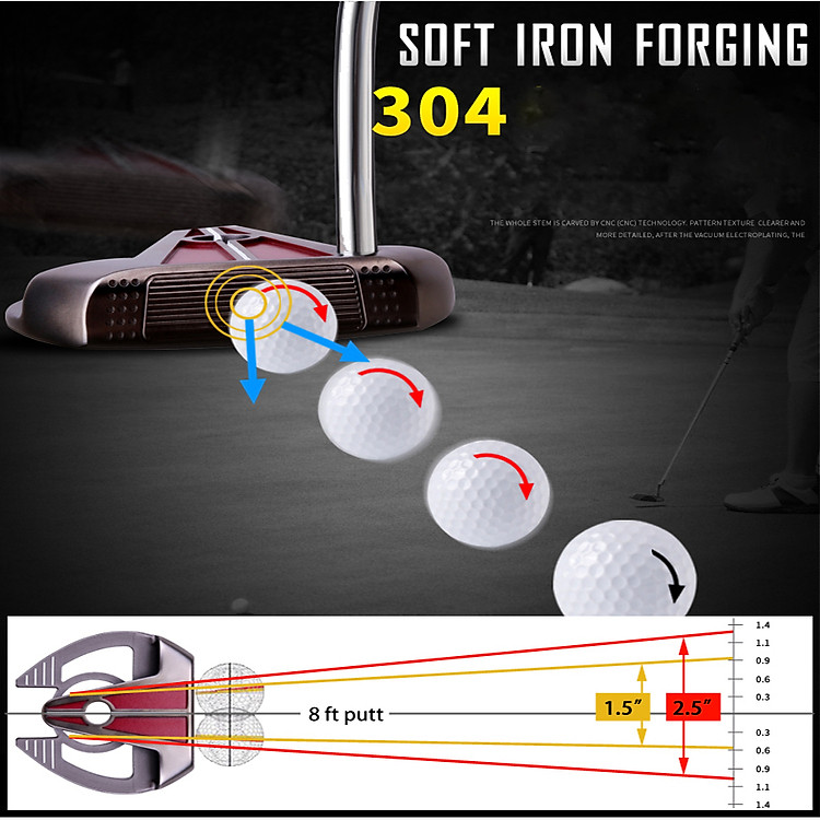 - Công nghệ giảm impact với 5 điểm xung quanh mặt putter tạo sự liền mạch giữa lõi nhôm và khung thép.