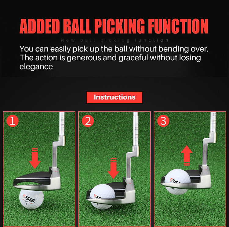 Gậy Putter TUG034 là sản phẩm được sản xuất bởi công nghệ hiện đại tiên tiến và mẫu mã sang trọng, tối ưu trọng lượng. Với thiết kế thông minh, golfer có thể dễ dàng nhặt bóng sau khi putting mà không cần phải cúi người xuống.