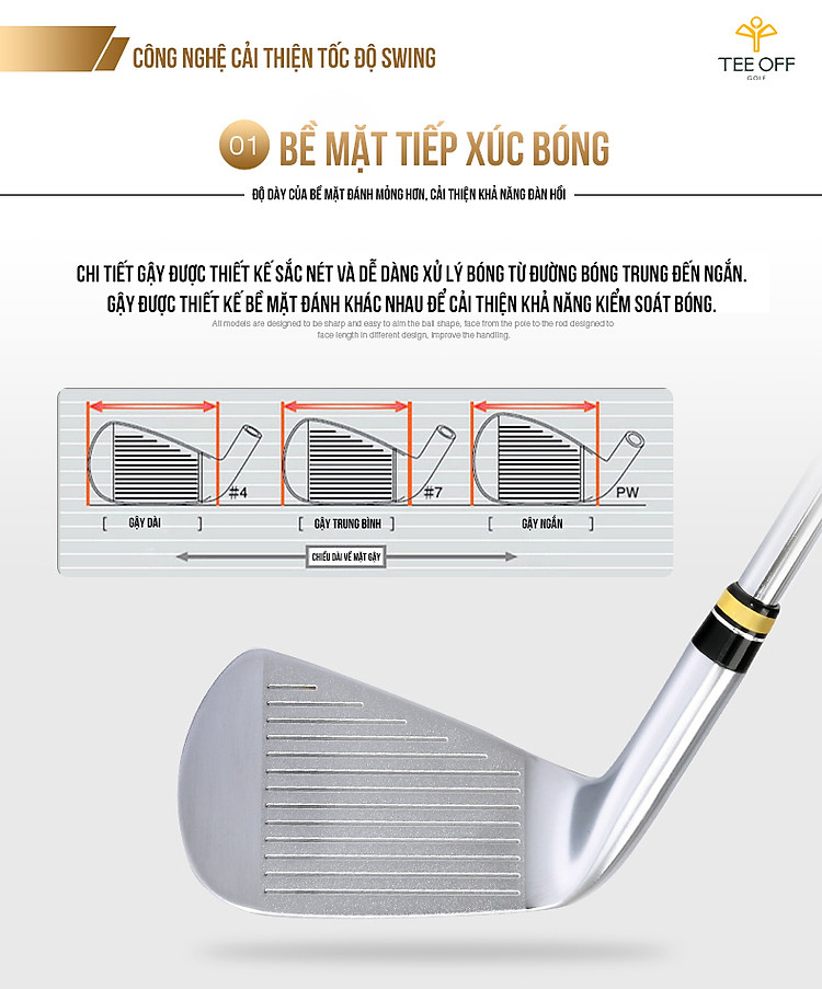 - Bề mặt gậy lớn có thể cải thiện tỷ lệ chính xác của cú đánh, cũng có thể đánh được khoảng cách xa hơn.