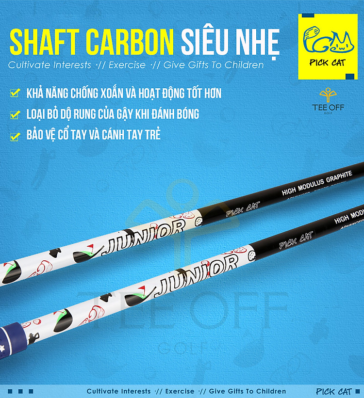 - Với chất liệu cán gậy bằng Graphite nhẹ và bền giúp cho con bạn có sự khởi đầu với môn Golf thuận lợi nhất, là nền tảng cho sự phát triển của các tay Golf chuyên nghiệp trong tương lai.