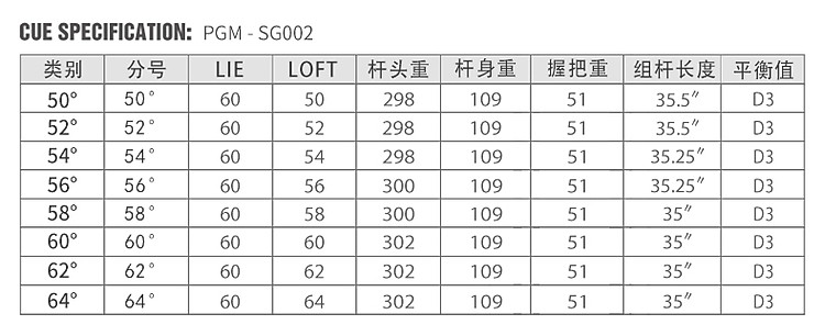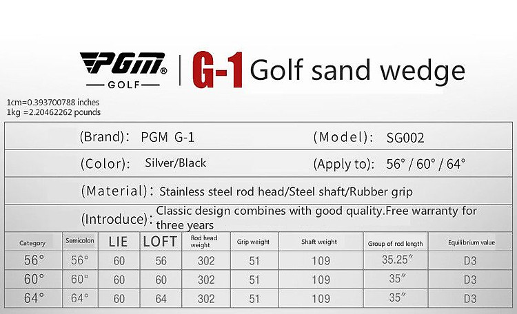- Tên sản phẩm: Gậy Kỹ Thuật 52/56/60/64 - PGM Golf Wedge - SG002