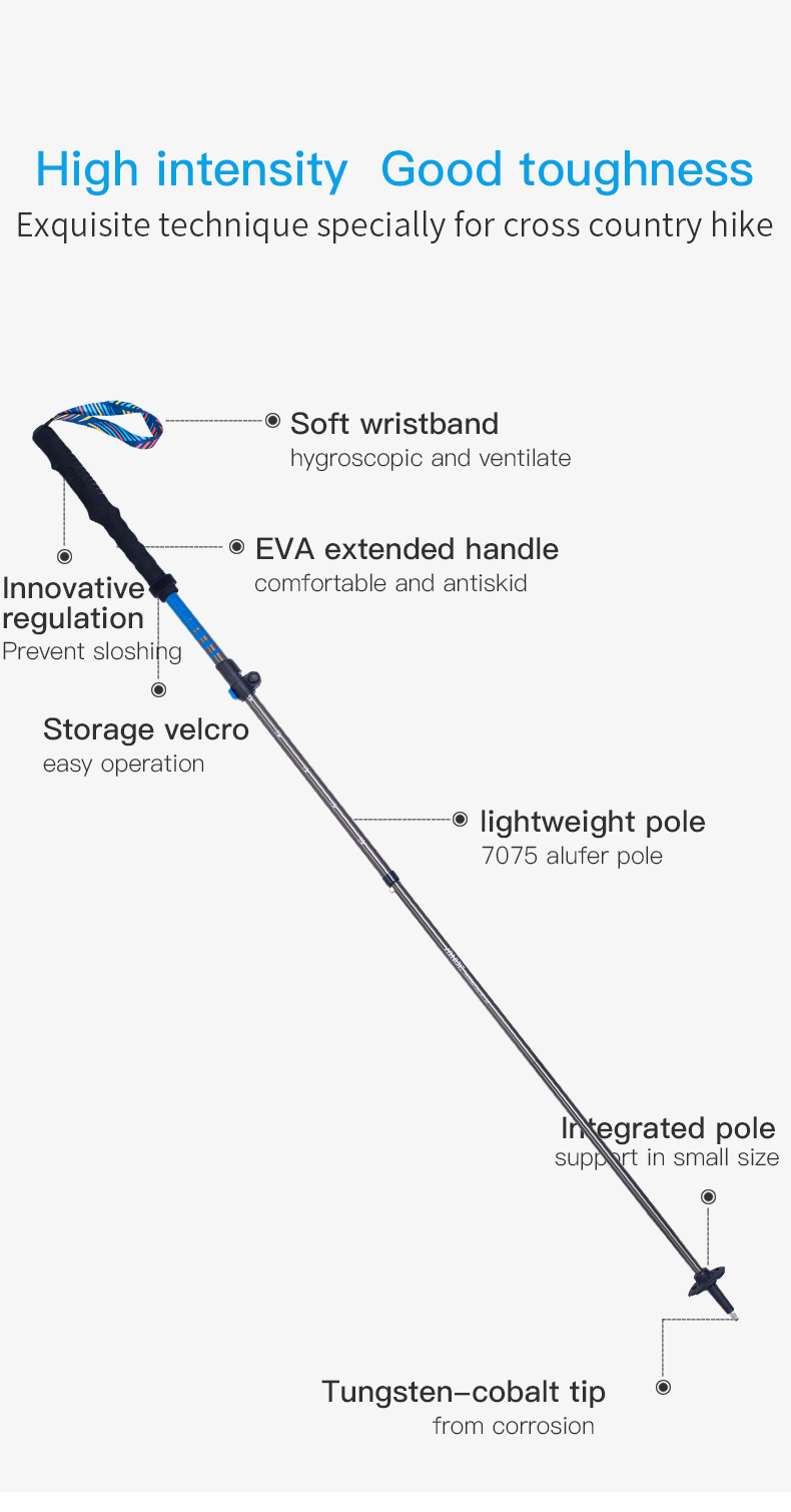 - Chất liệu cao cấp: được làm từ hợp kim nhôm 7075 có độ bền cao, trekking siêu nhẹ, tiện lợi, chắc chắn và chắc chắn