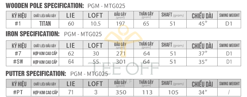 - TeeOff Golf là đại lý độc quyền phân phối - Nhập khẩu chính hãng các sản phẩm của PGM và nhiều thương hiệu đồ golf khác tại Việt Nam.