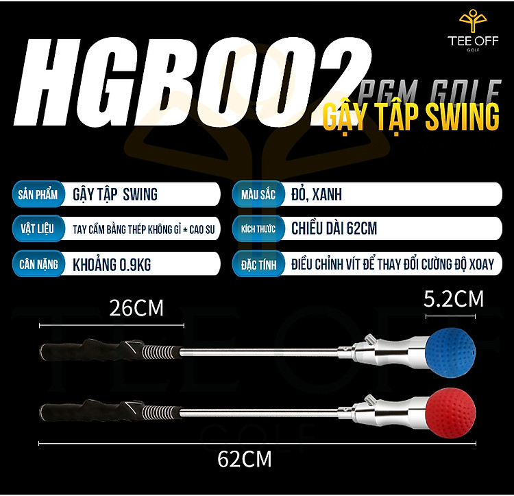 - Gậy tập kỹ thuật Swing HGB002 là dụng cụ cần thiết cho người mới bắt đầu chơi Golf, giúp hình thành thói quen chơi đúng kỹ thuật thì tương ứng khả năng và trình độ sẽ ngày càng tăng cao.
