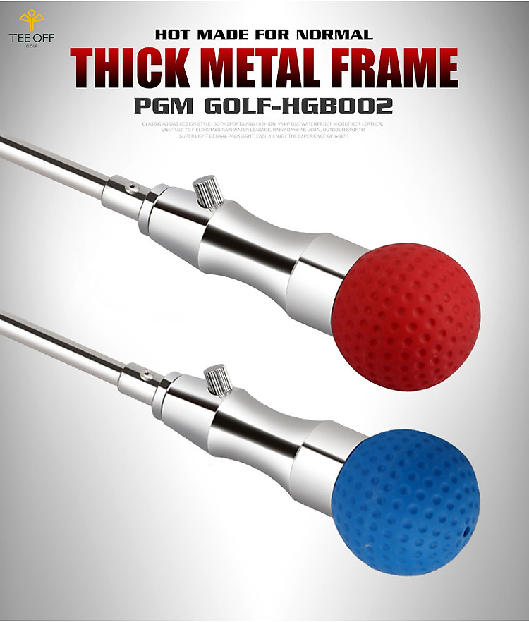 - Điểm nổi bật của gậy tập Swing HGB002 so với gậy HGB001 là nó được thiết kế thêm bi hồi có âm thanh báo, mục đích giữ nhịp lên Swing và xuống Swing một cách nhịp nhàng nhất, người tập có thể tự kiểm soát động tác, nắm bắt và sửa những lỗi sai kỹ thuật.