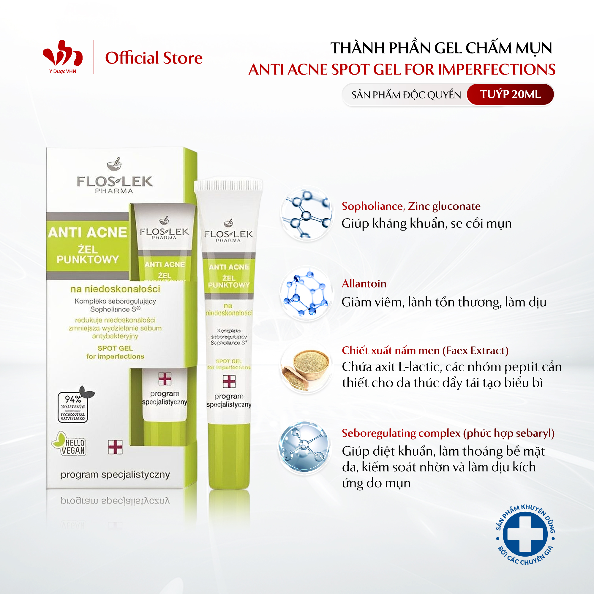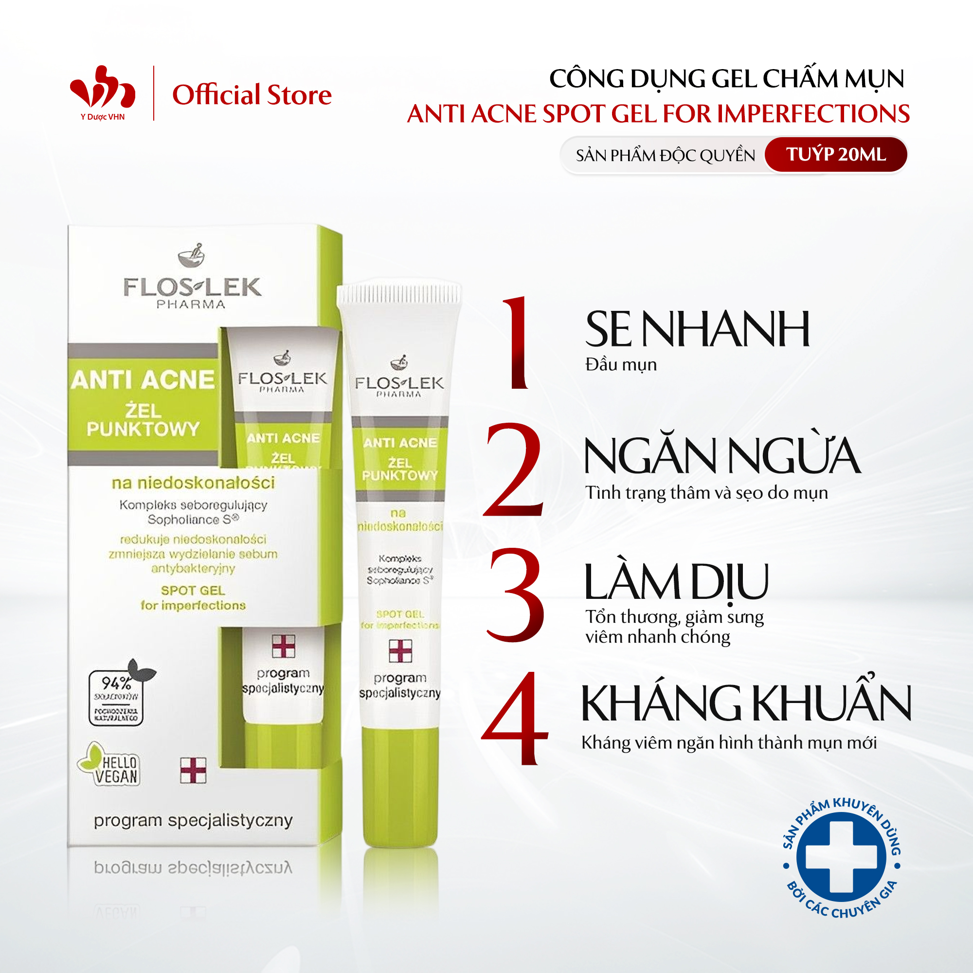 - Tên sản phẩm: Gel Chấm Mụn Anti Acne Spot Gel For Imperfections FLOSLEK.